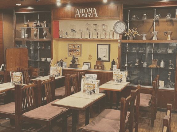 「アロマ珈琲 八重洲店」は、東京駅八重洲口の地下街の中にある、昭和の純喫茶を想わせる老舗珈琲店です。